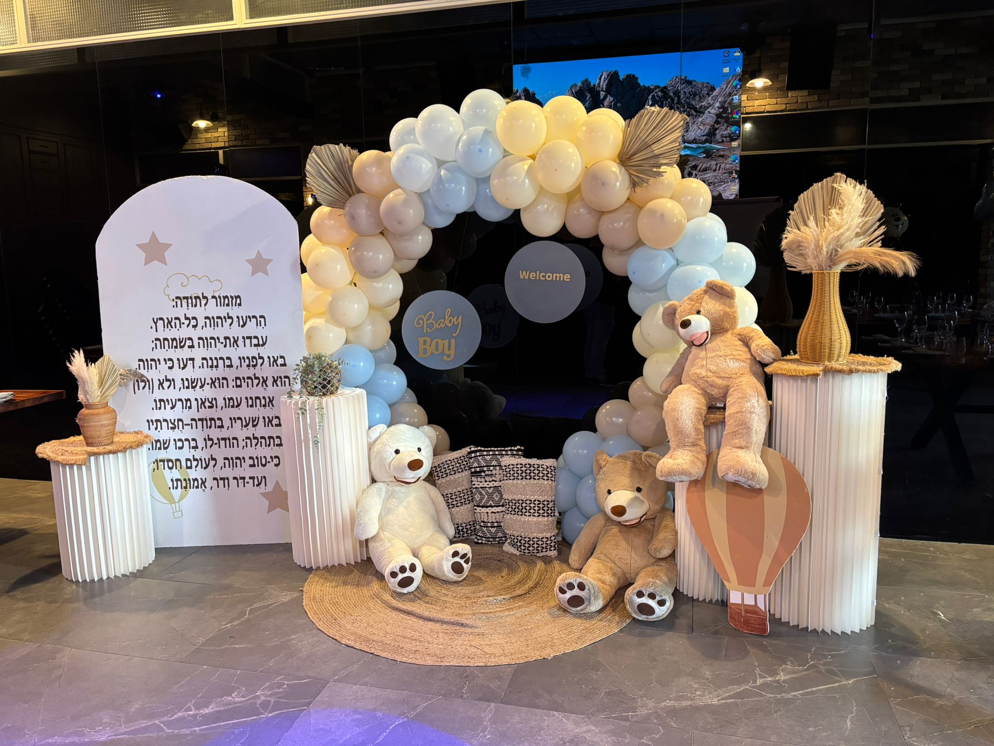 עיצוב בלונים ייחודי בהתאמה אישית לאירועים מכל הסוגים – בר ובת מצווה, בריתות, חינות, ימי הולדת, חתונות, מסיבות ועוד. אני מציע קירות בלונים מעוצבים, קשתות, עמודים, ופתרונות מיתוג מרהיבים עם בלונים – הכול לפי בחירתכם האישית של צבעים, סגנון וקונספט. בנוסף, ניתן לשלב בלוני הליום ועיצובים לשולחנות – כולם בעיצוב אישי מוקפד ומרשים, בהתאמה מושלמת לאופי האירוע. שילוב בין יצירתיות, צבע וחגיגיות שיהפוך כל אירוע לחוויה בלתי נשכחת.
